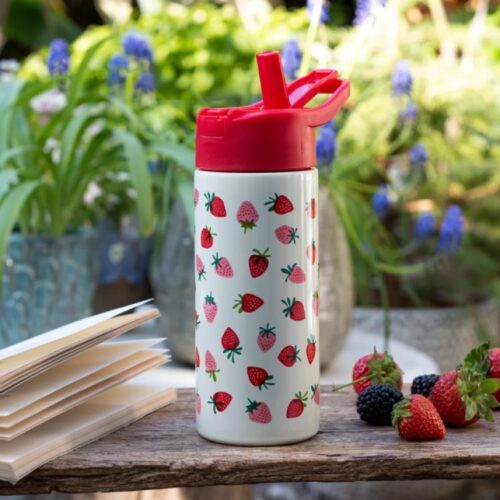 LITTLE STRAWBERRY METAL DRINKS BOTTLE WITH PUSH BUTTON LID