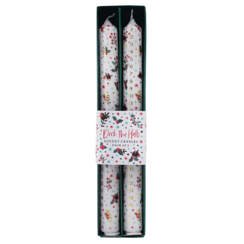 ADVENT CANDLES -PACK OF 2 – CHRISTMAS DECK THE HALLS