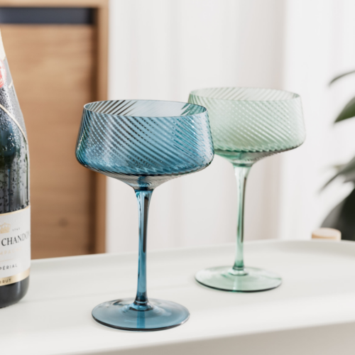 TWIST CHAMPAGNE COUPE GLASSES – SET OF 2 BLUE/GREEN