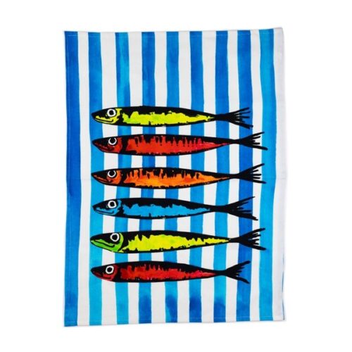 RAINBOW SARDINES BLUE TEA TOWEL