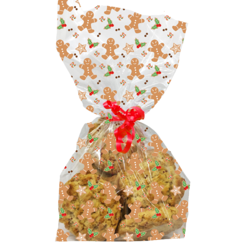 CELLOPHANE GIFT BAGS – GINGERBREAD FRIENDS – PACK OF 20