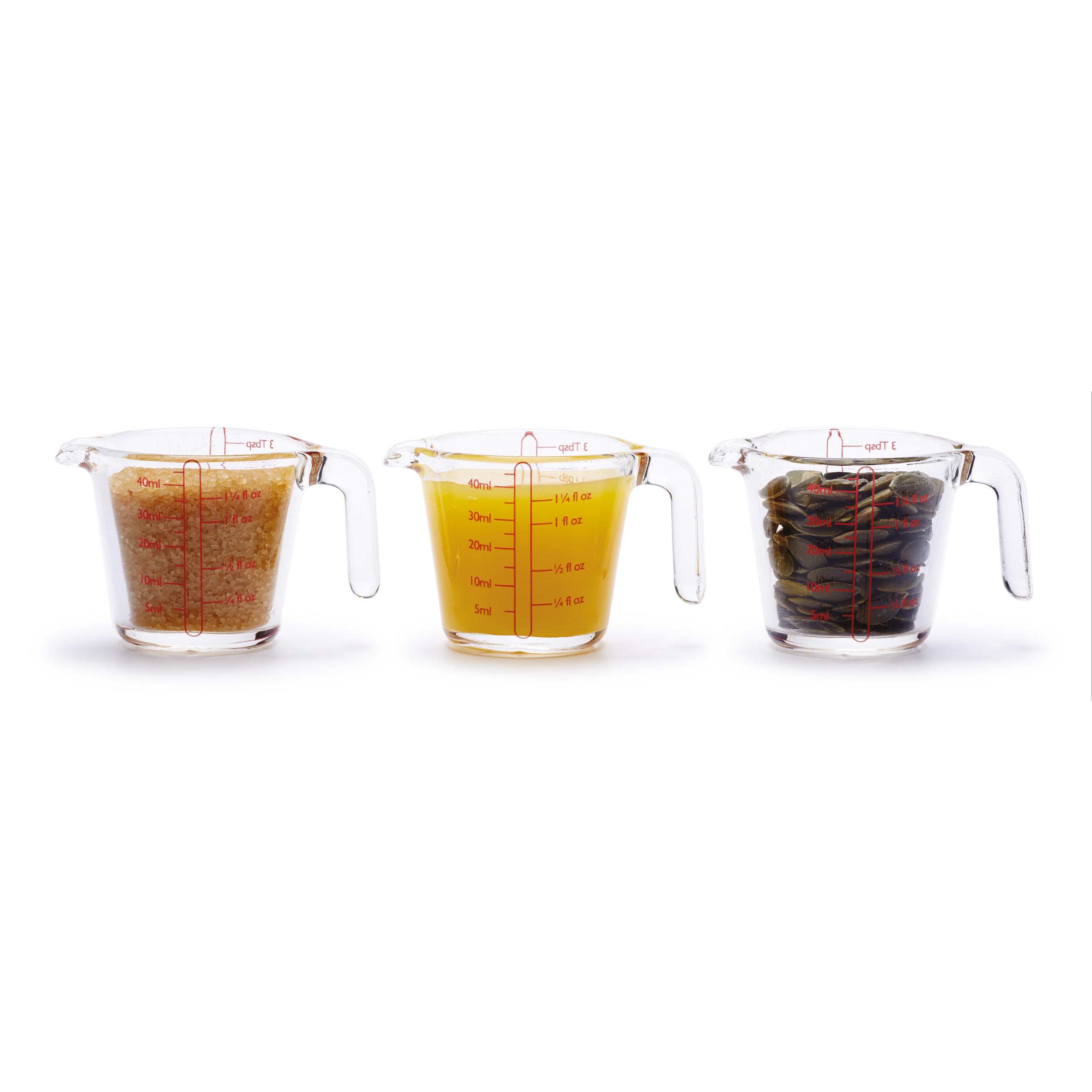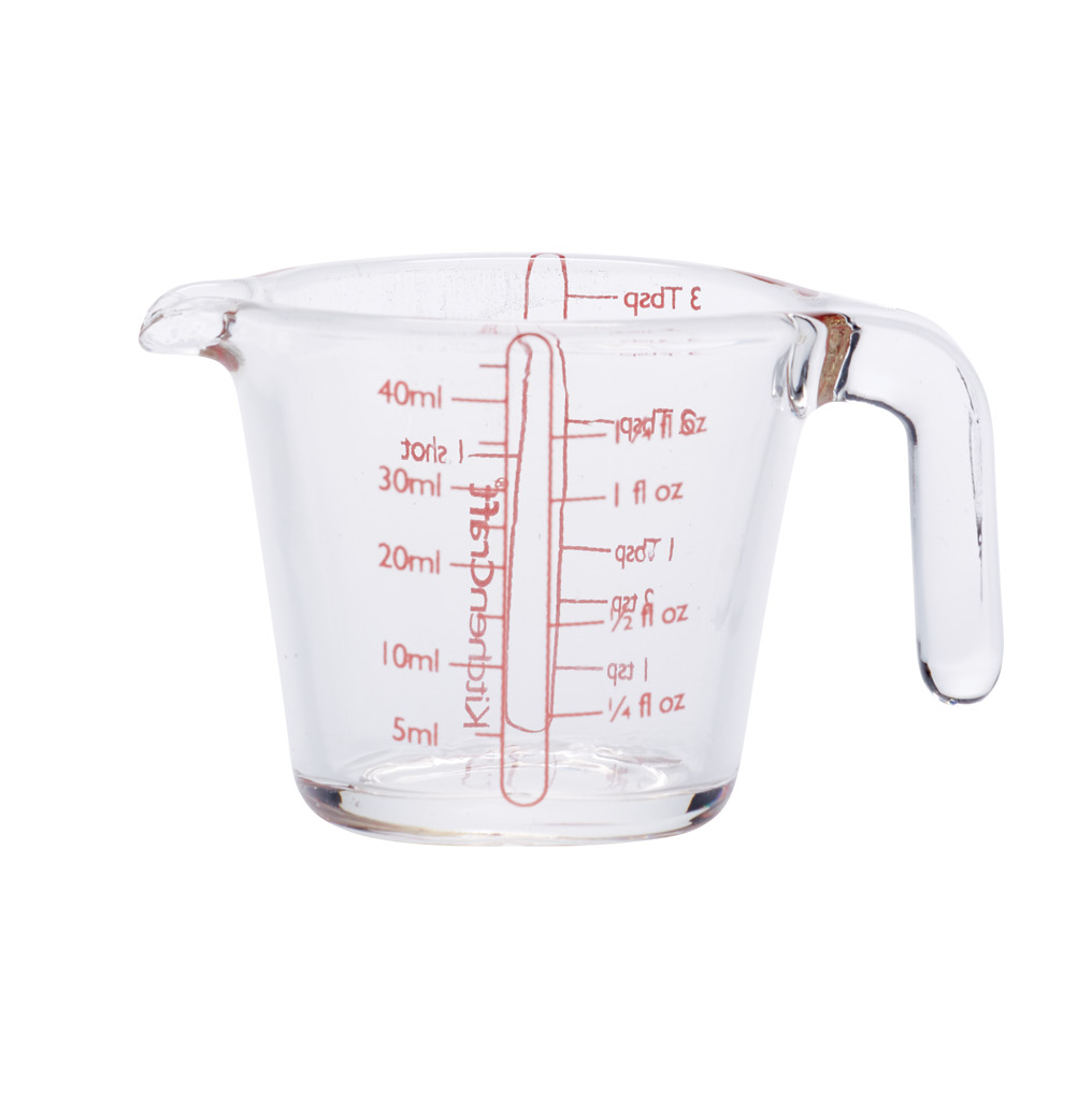 Ideal for quickly and easily measuring small quantities of liquids and dry goods, this mini glass measure includes 5 conversions in one measuring jug – millilitres, fluid ounces, shots, teaspoons and tablespoons.