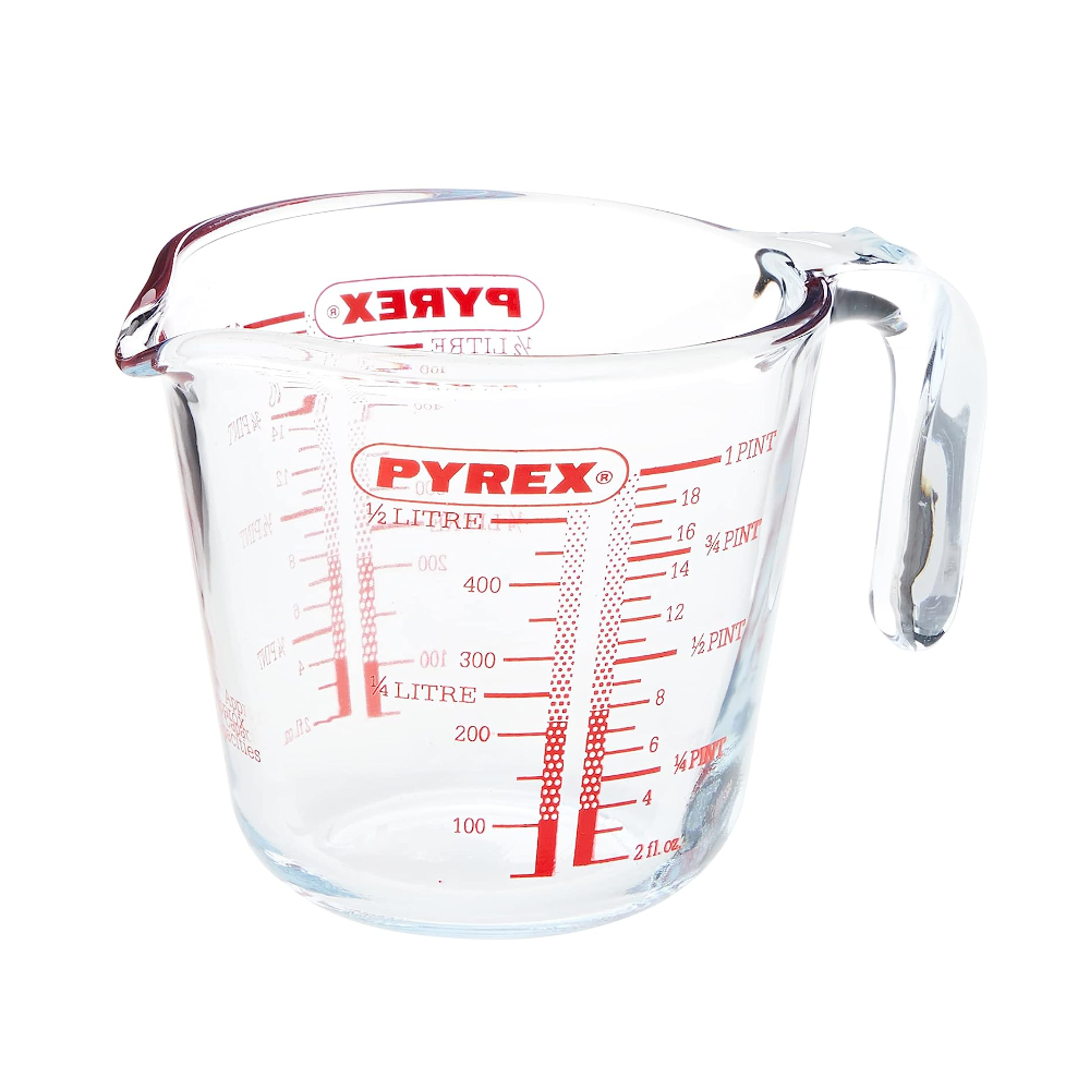 Accurately measure liquids in this classically styled heat resistant glass measuring jug with red metric and imperial markings.