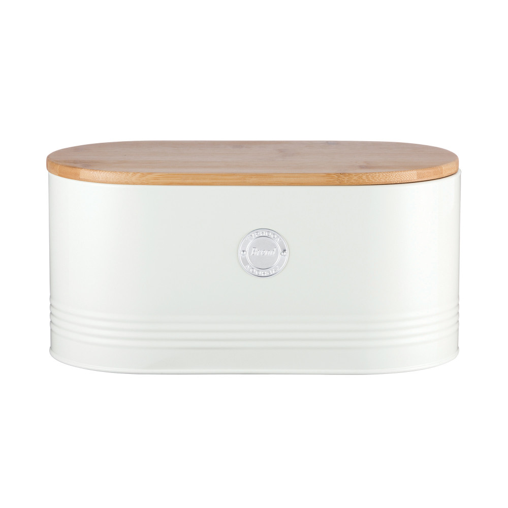 Hard wearing and durable bread bin. High quality manufacture. Strong seamless construction. Bamboo wood lid sourced from sustainable forests.