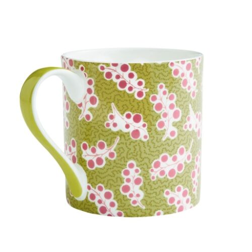 Start your day with a sip of style from this elegant fine bone china mug. It features an intricate white floral pattern set against a lovely dusty rose pink background, with the handle in a solid coordinating pink. Its classic shape and comfortable handle make it the perfect mug for your morning coffee, afternoon tea, or any cozy moment. This mug also makes a wonderful gift for a friend or family member.
