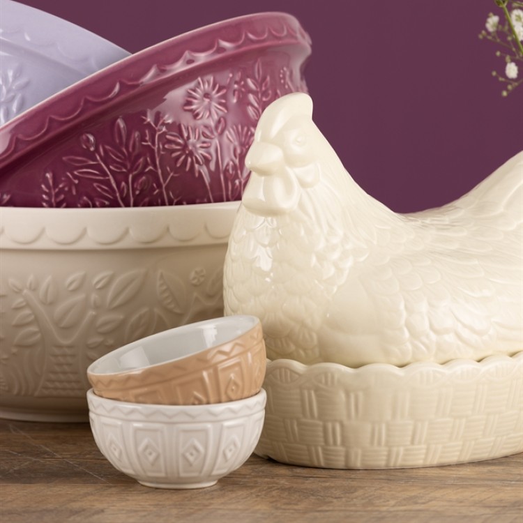 The Mason Cash Cream Hen Egg Nest has been inspired by Great British Farm Yards. The nest has been crafted in a rustic style with a modern twist. Made from chip resistant, high quality dolomite, it can store eggs and also act as a kitchen tidy