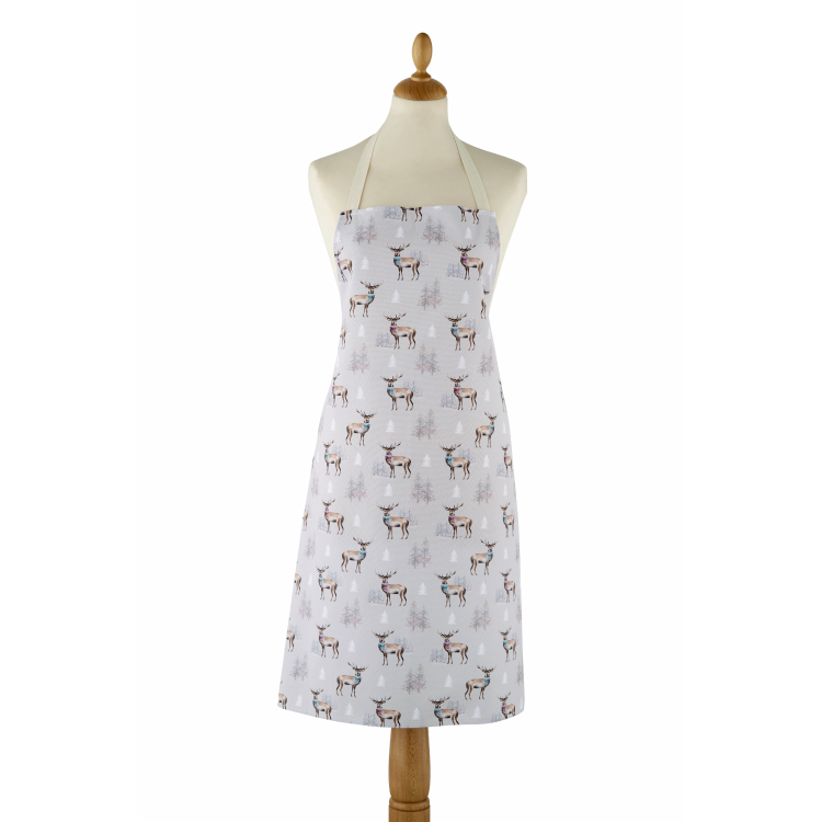Cotton PVC apron featuring stags on a natural colour background.