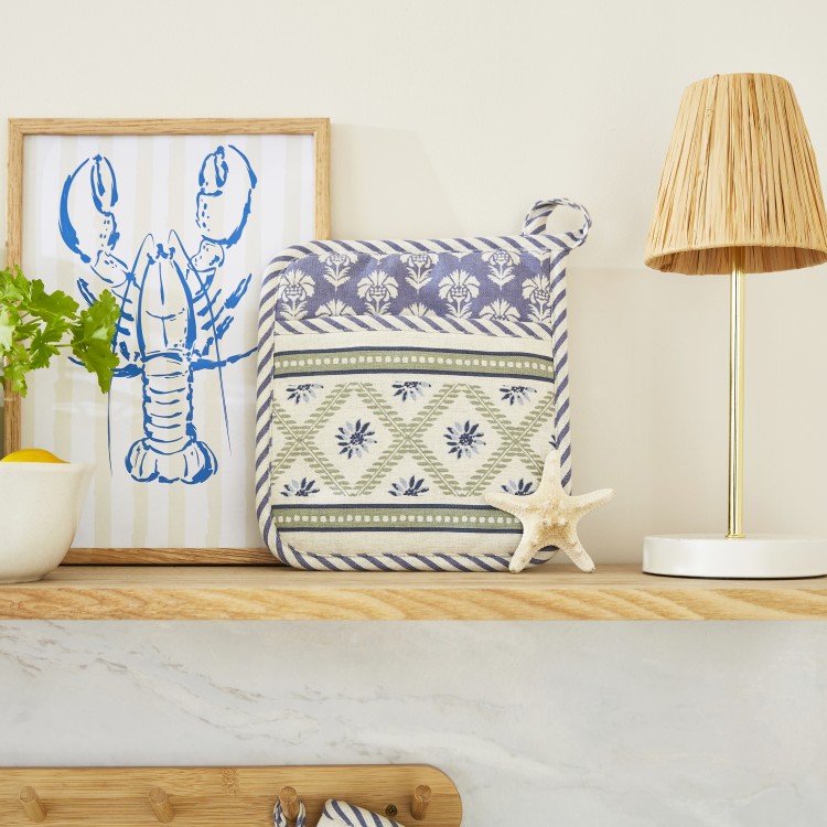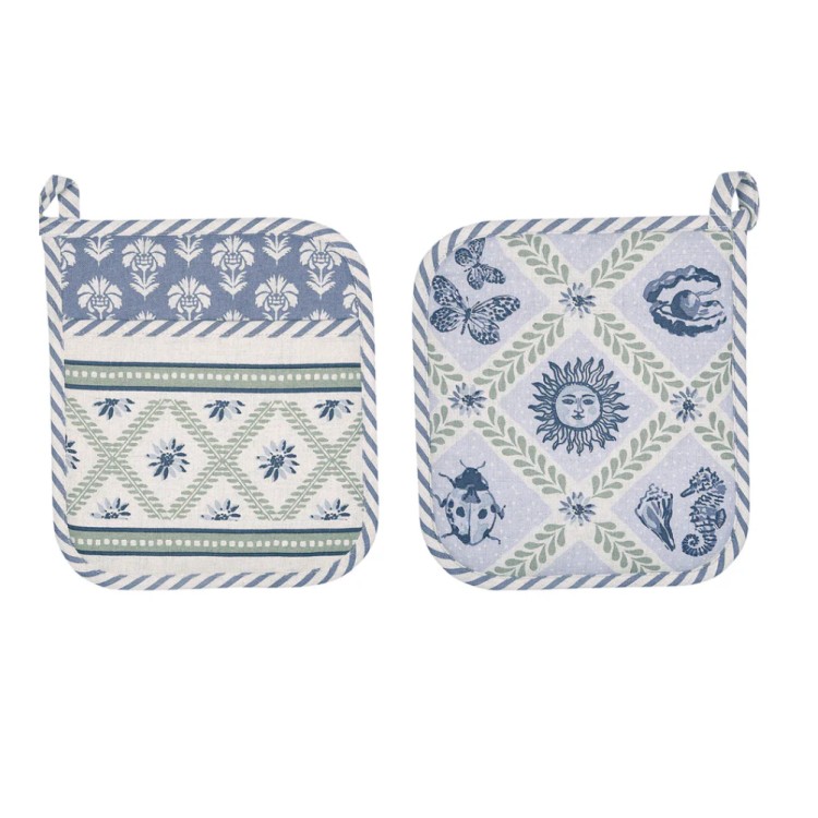 The Ulster Weavers Coastal Treasures pot mitt, with a double sided design.
