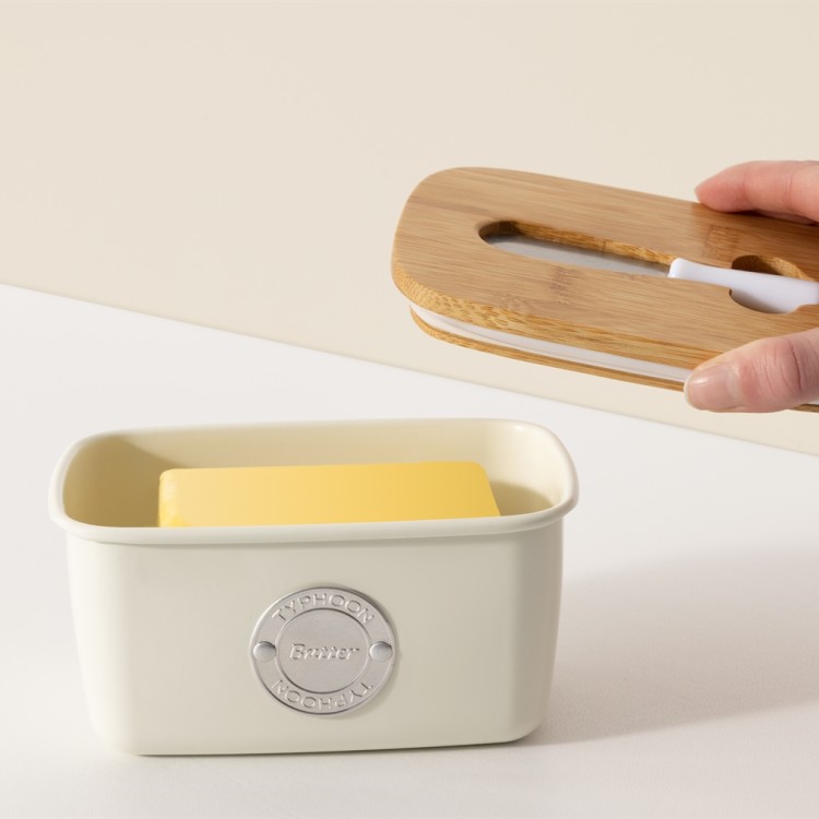 Made to fit up to 1lb of butter, the dish is complete with a silicone seal to create an airtight lid and a handy butter spreader which fits perfectly inside. The wooden lid can also be used as a base to cut and spread on!