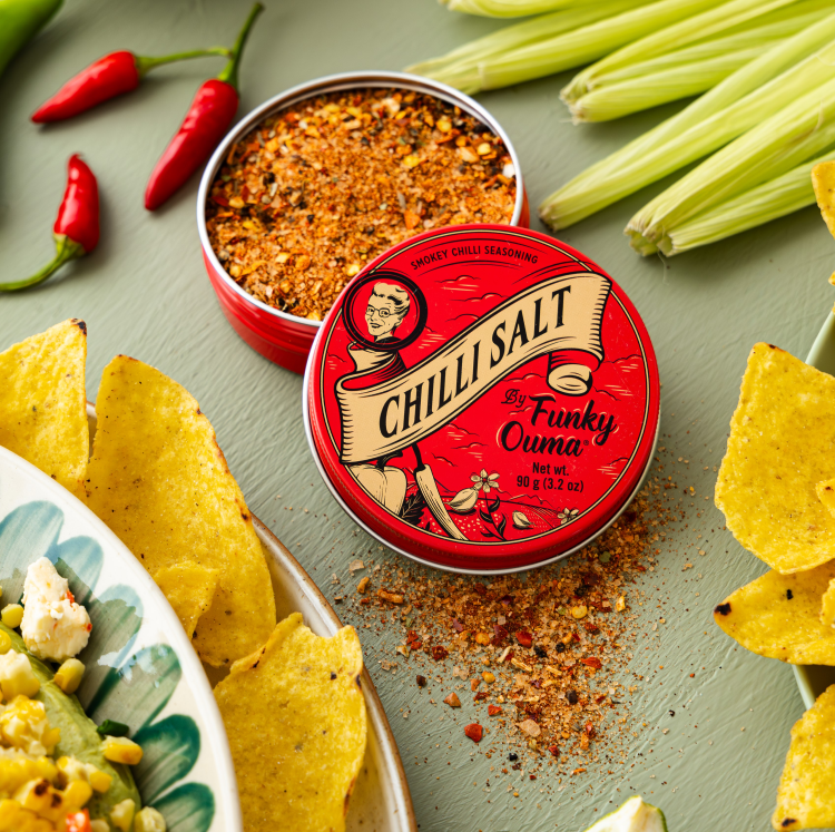 Never settle for bland food again! The Funky Ouma Chilli Salt is perfect for adding a vibrant kick and delicious depth of flavour to any meal.