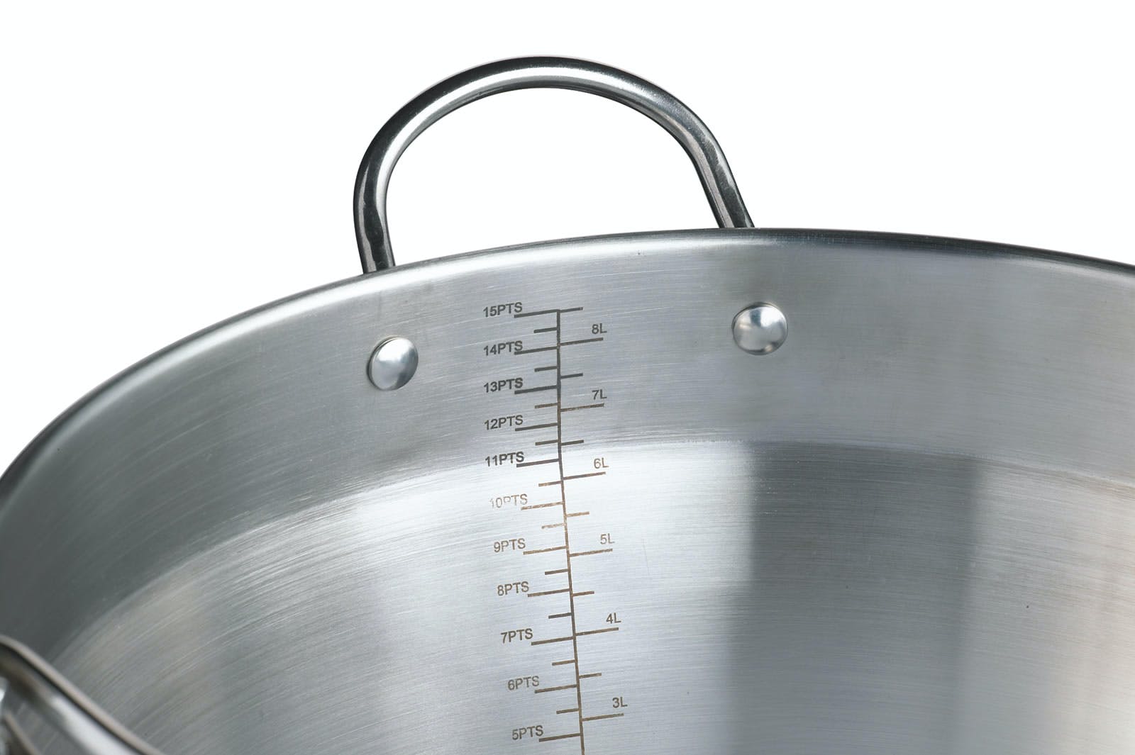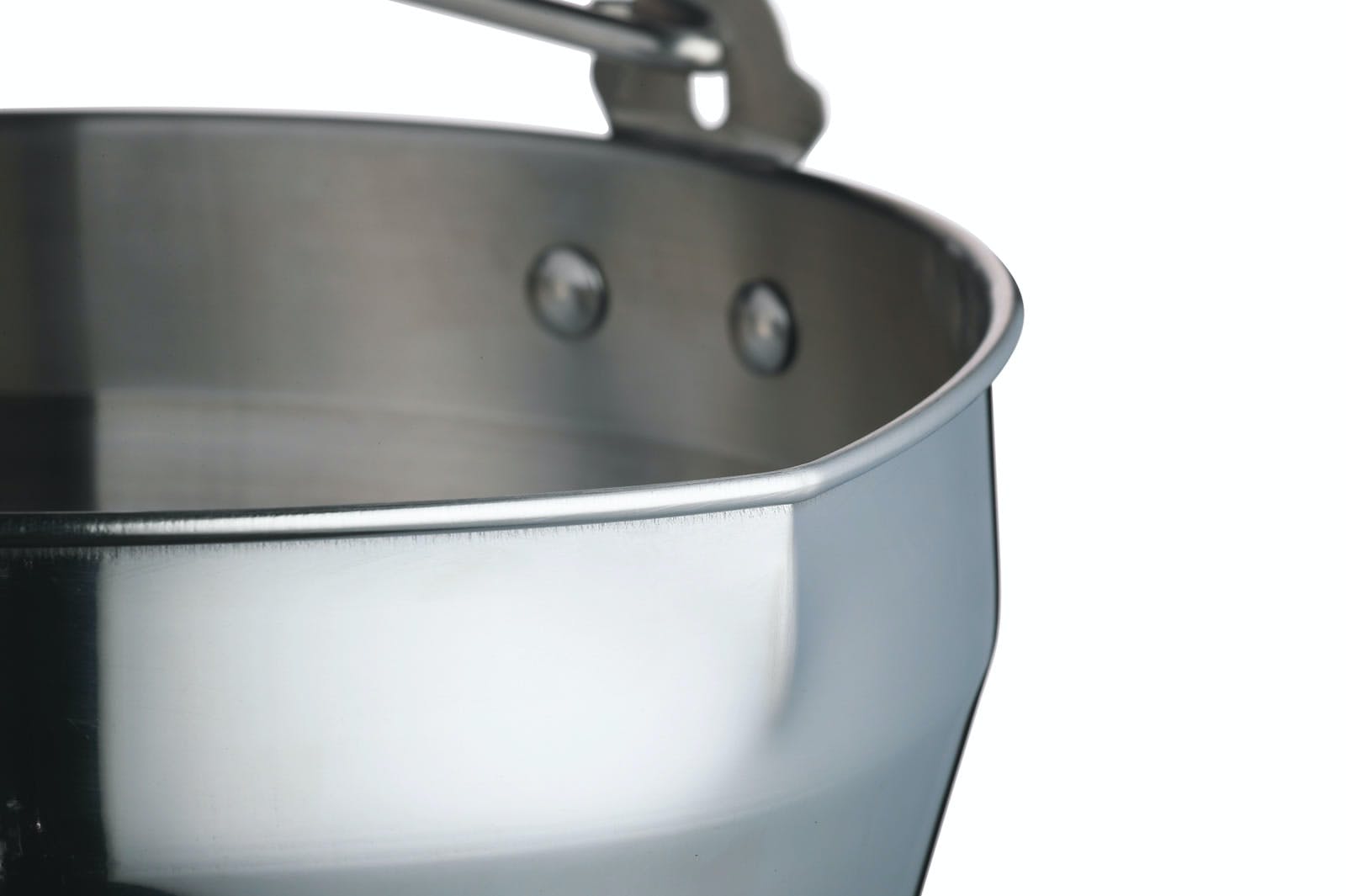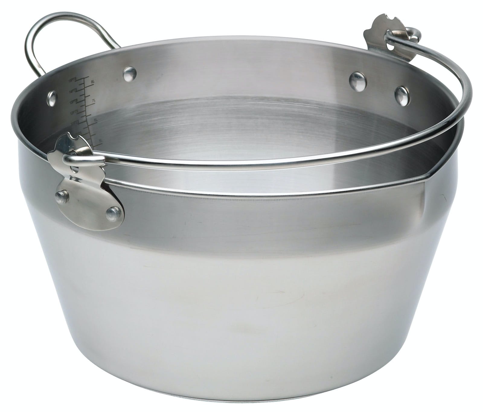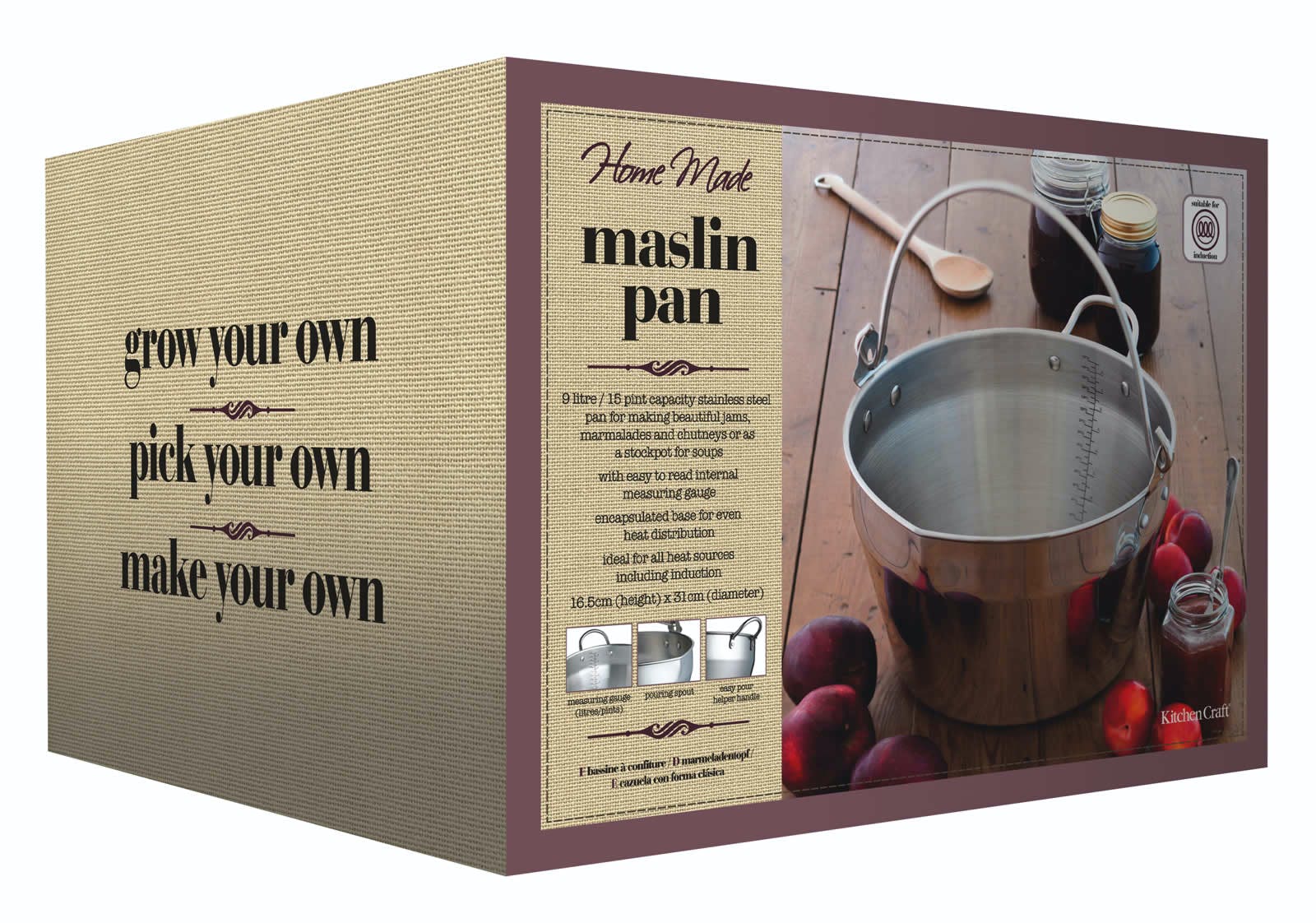 Perfect for making home made jam, marmalade, chutney and also stock, soups and stews, the stylish Homemade Maslin Pan has everything you need to do it properly. Featuring graduated metric and imperial markings (litres/pints) on the inside of the pan, side pouring spout with side handle helper for when the pot is heavy, durable riveted fold down carry handle and an encapsulated base for even heating throughout the pan.