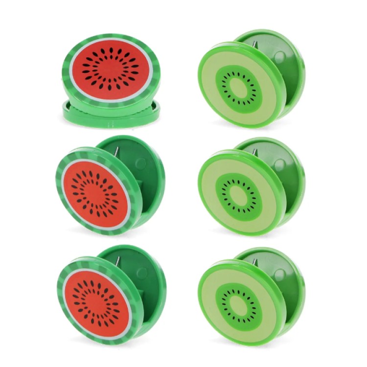 A set of 6 kiwi and watermelon shaped bagclips – perfect for sealing opened food bags, keeping contents fresh.