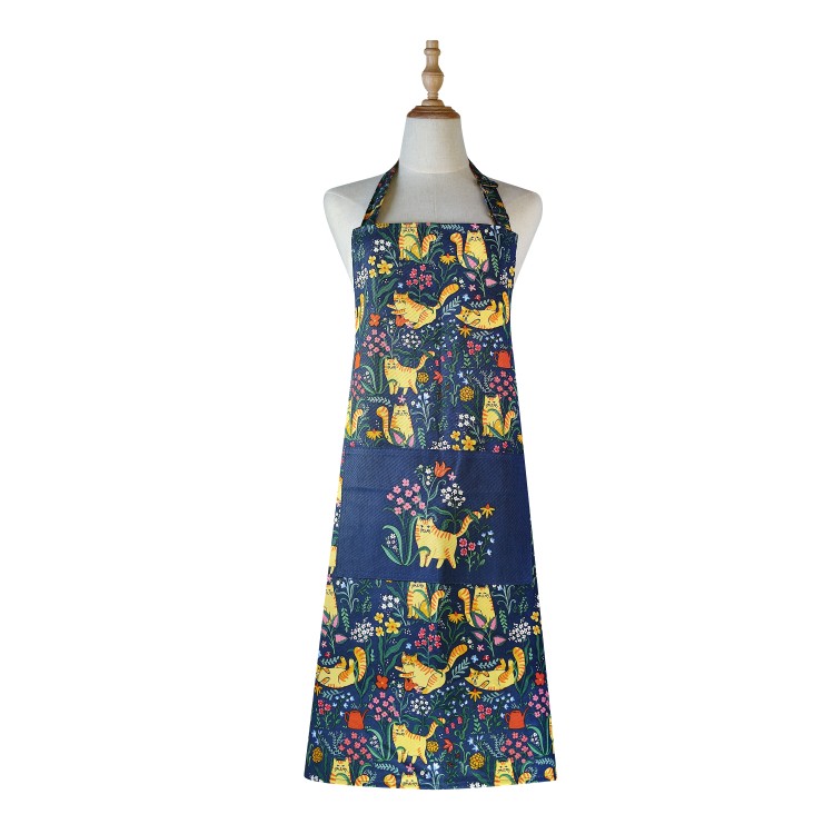 The apron has a front pocket, adjustable neck straps and waist ties.