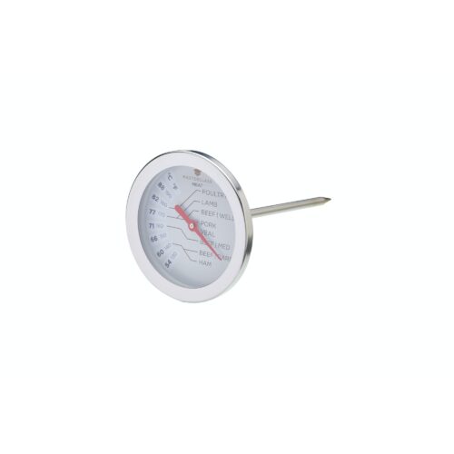 Its face features a chart of key doneness temperatures – for beef, pork, chicken and fish. Once you’ve chosen your desired doneness, you can make it easy to monitor by setting its handy temperature reference marker to the required target. When the dial reaches the target temperature, you know it’s done, just the way you like it.