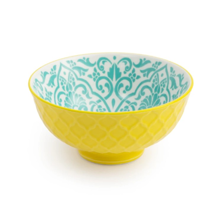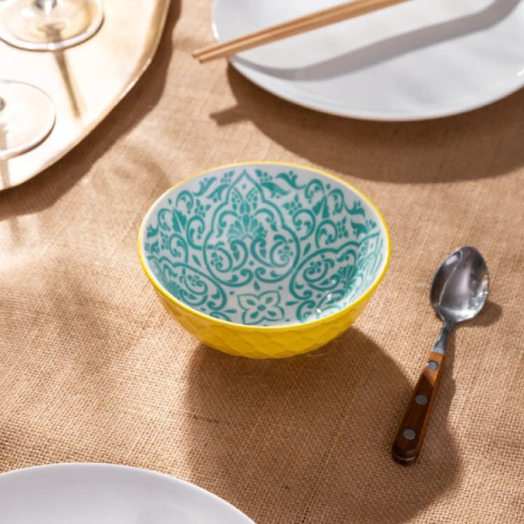 Add a splash of colour to your kitchen with the Mikasa Yellow and Blue Geometric Stoneware Nibble Bowl. Designed with a striking contrast between the inside and outside, it’s a practical piece that doubles as a work of art for your countertop or dining table. It’s perfect for dips, sauces, nuts, olives, and small snacks.