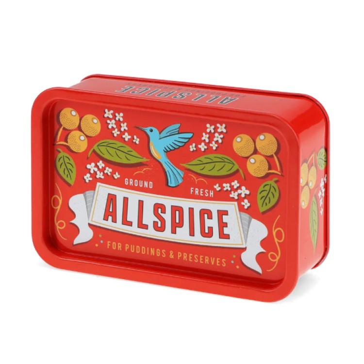 Add a bold, classic touch to your shelves with this vibrant red “Allspice” decorative tin. Inspired by traditional pantry aesthetics, this tin features charming “For Puddings & Preserves” branding that feels right at home in a cozy kitchen or a creative studio.