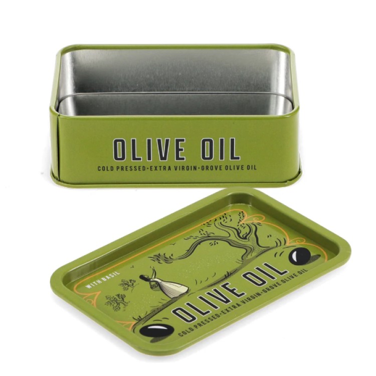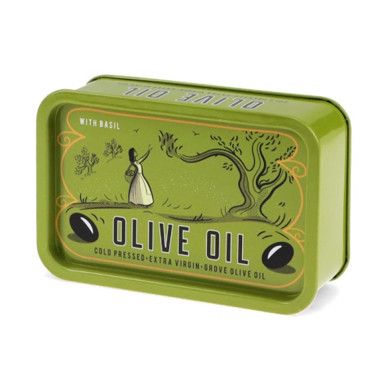 Add a touch of Mediterranean charm to your kitchen or workspace with this stylish, olive-green storage tin. Featuring a beautiful “Cold Pressed Extra Virgin” illustration, this tin combines retro aesthetics with practical utility.