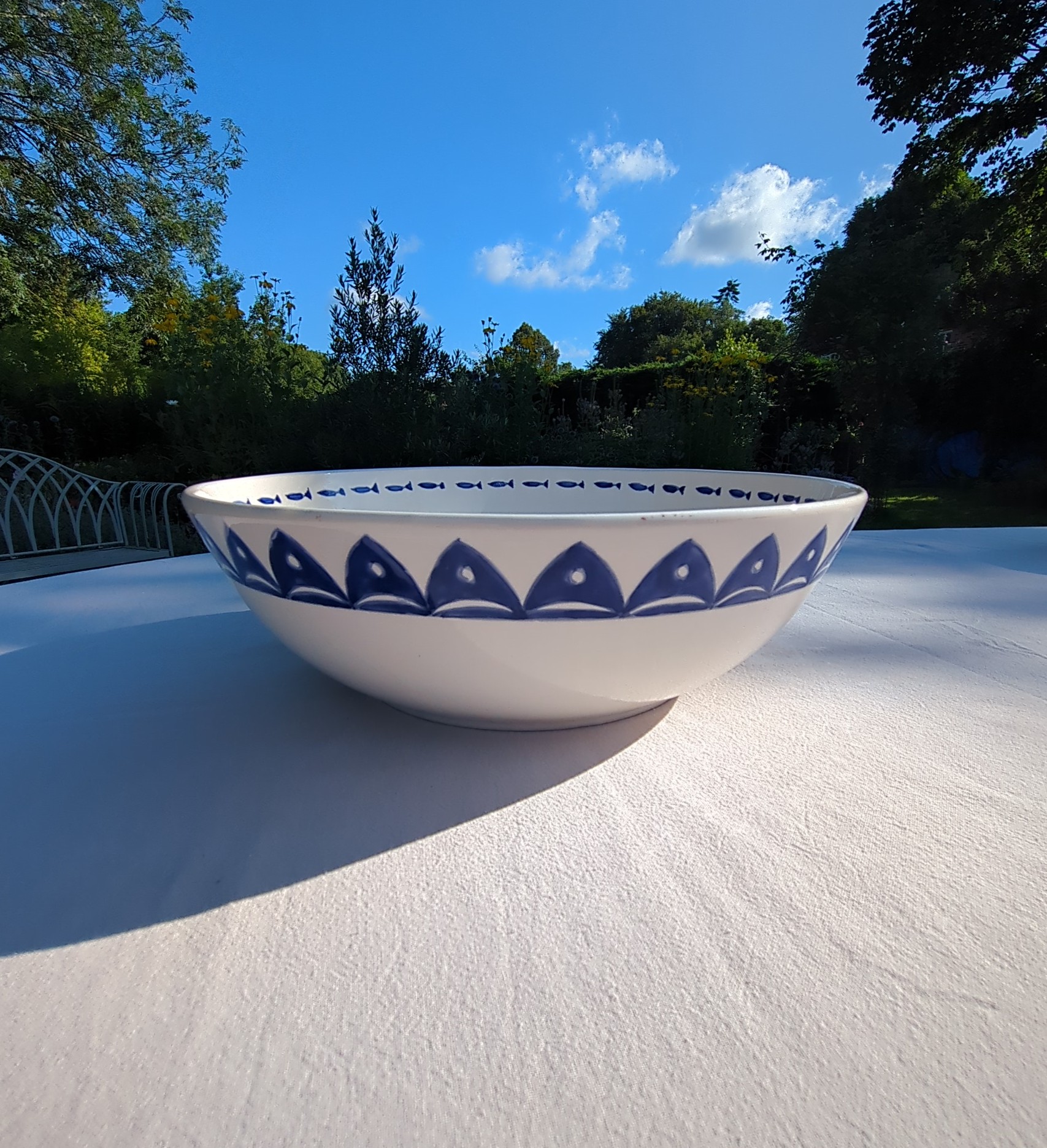 Hand-decorated in Tunisia, our “Poisson Kélibia” bowls are a celebration of coastal life. Adorned with delightful blue fish, these versatile bowls are perfect for everything from salads and pasta to snacks and dips, adding a touch of Mediterranean charm and artisanal character to any meal.