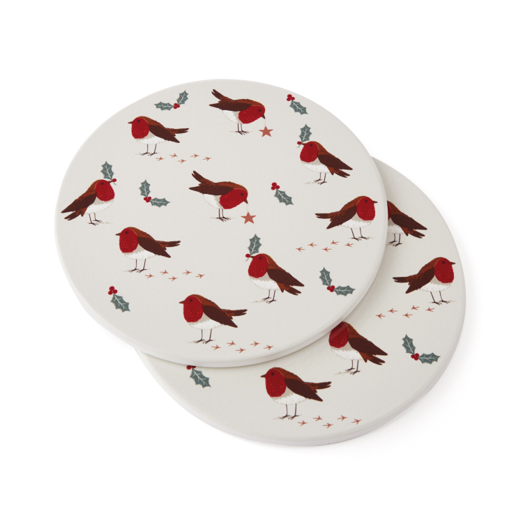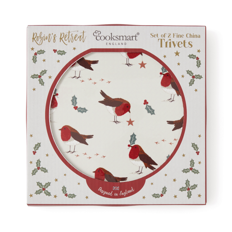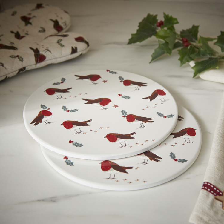 Transform your kitchen and dining space into a cosy, festive haven with the delightful Robins Retreat collection made up of tastefully designed linens, ceramics and table place settings Inspired by the beloved robin redbreast and the lush greenery of winter, this charming range features a beautifully detailed design of elegant robins, holly leaves, and vibrant red berries on a warm, natural background.
