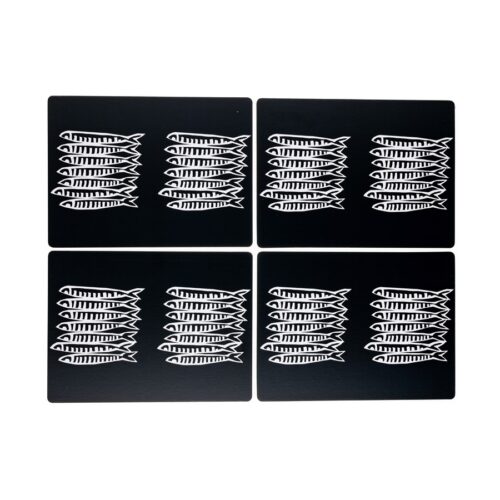 With a bold white out of black design, these Sardine coasters featuring six fish have a bold stand out look.