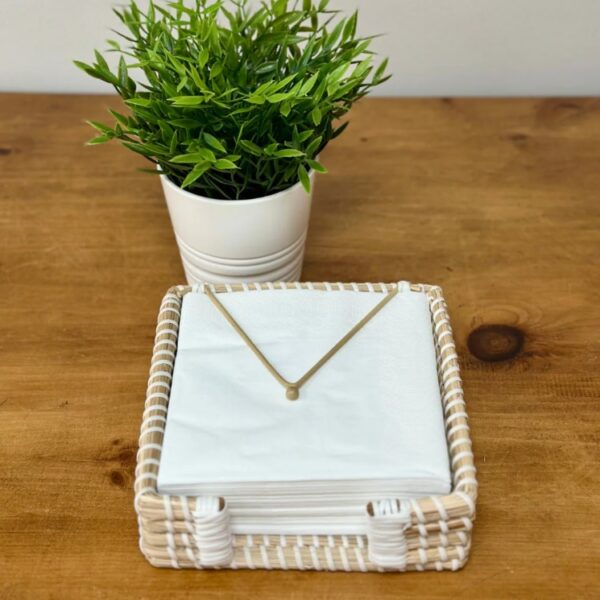 Add a touch of charm to your table with this handwoven seagrass napkin holder. Designed with a weighted arm to keep napkins in place, it’s both functional and stylish. Perfect for indoor or outdoor entertaining, this natural-toned piece complements any décor. With its practical size, it keeps napkins neatly organised and easily accessible. Its easy-care design allows for a simple wipe clean only.Â