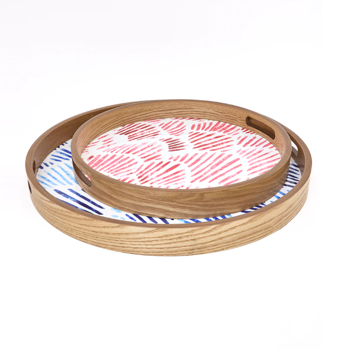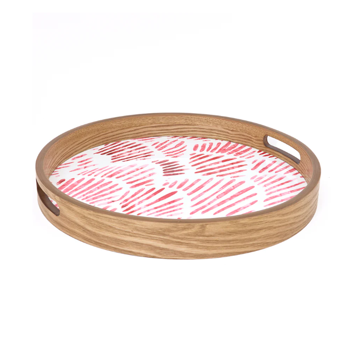 Crafted from rich, durable mango wood, this tray showcases a beautifully curved frame with built-in handles for easy carrying. The interior features a hand-applied red shell pattern, bringing a warm, lively touch that instantly brightens any setting. Whether you’re serving drinks, organizing essentials, or styling your coffee table, this tray blends functionality with eye-catching design.