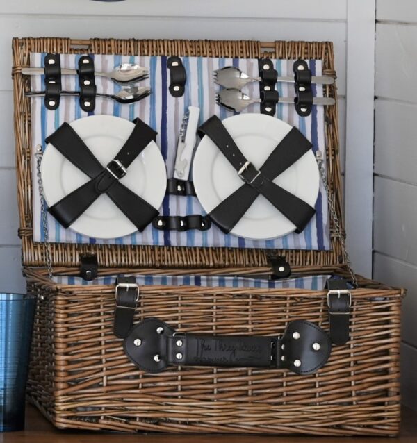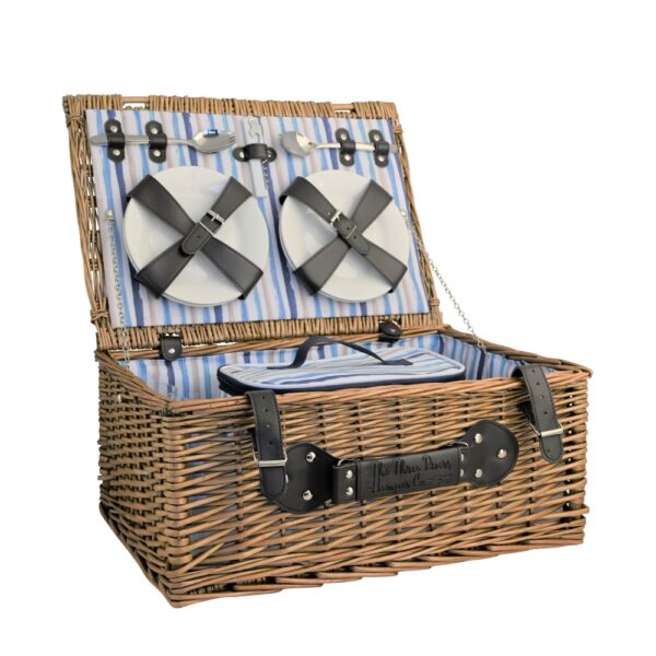 This 4 Person Hamper is part of the`St Ives’ collection and is filled with all the essential accessories for a fantastic picnic for 4 people. It fastens with buckles on the front and comes with a removable 8 litre insulated cool bag.