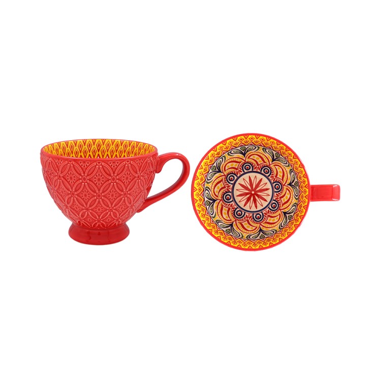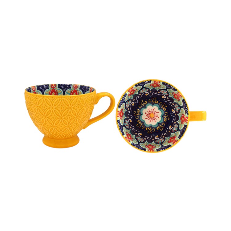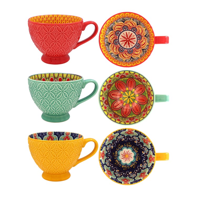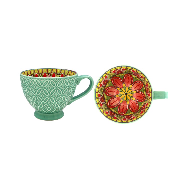 These north African design inspired mugs are the ideal addition to any kitchen. Available in three different beautiful bright style patterns.Â
