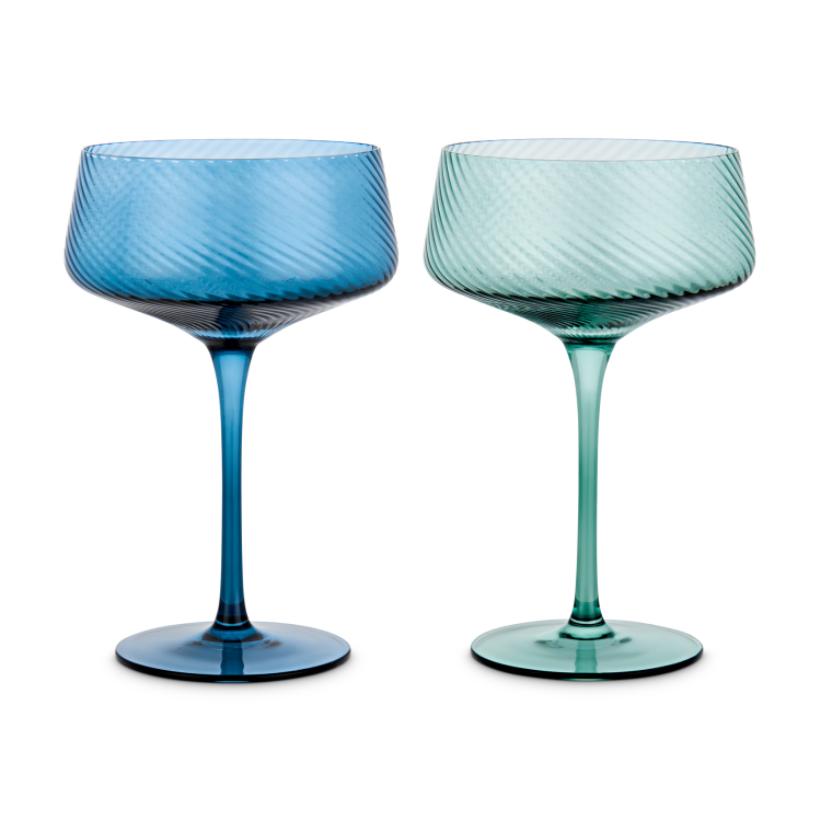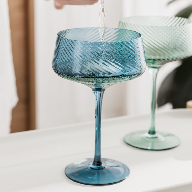Bring a touch of vintage glamour and modern color to your drinking experience. These exquisitely designed coupe glasses are perfect for serving sparkling wine, classic cocktails, or even elegant desserts.