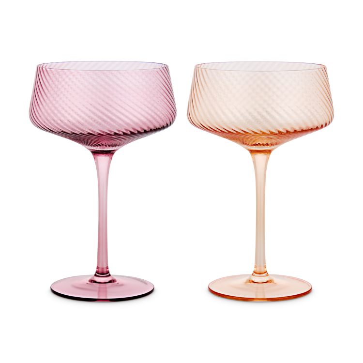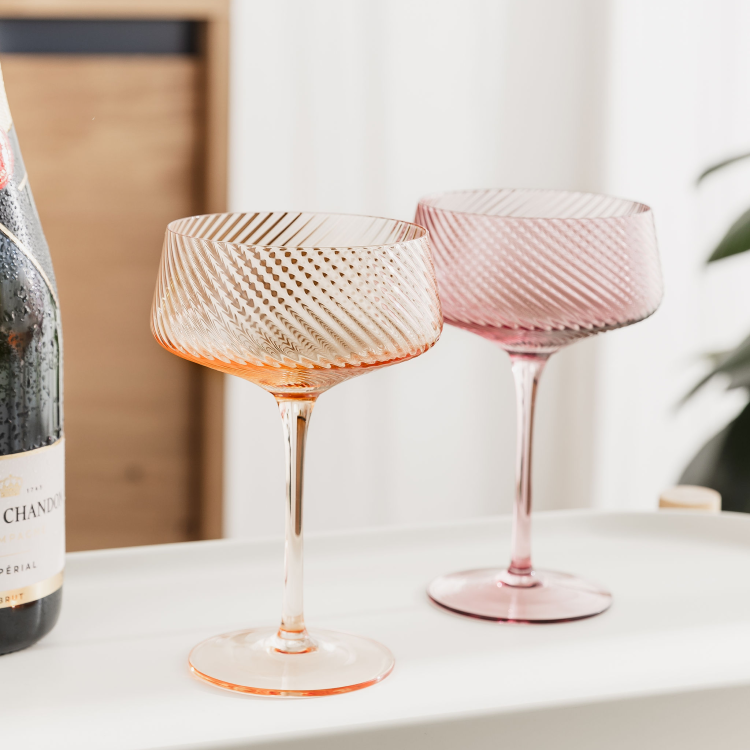 Bring a touch of vintage glamour and modern color to your drinking experience. These exquisitely designed coupe glasses are perfect for serving sparkling wine, classic cocktails, or even elegant desserts.
