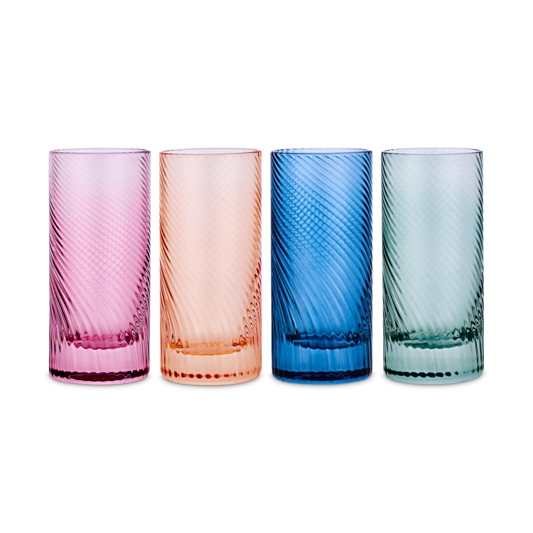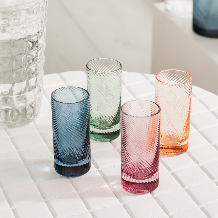 Set of 4 glasses in pink, peach, blue and green