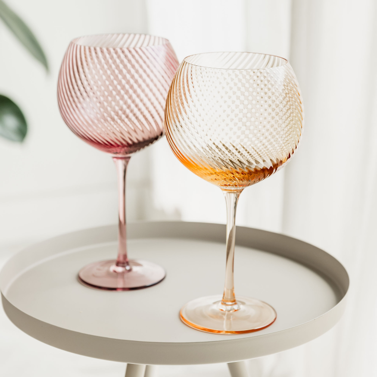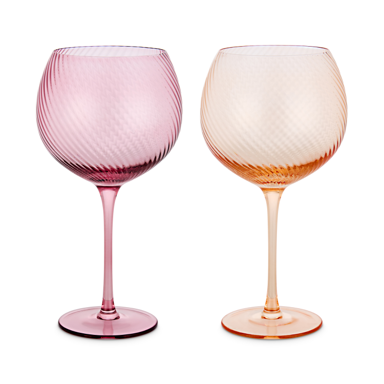 Make every sip a statement with this vibrant, twisted glassware. Featuring a contemporary swirl-textured glass design and striking two-tone colorways of pink and peach, these sets bring a touch of vintage glamour and a modern twist to your barware collection.