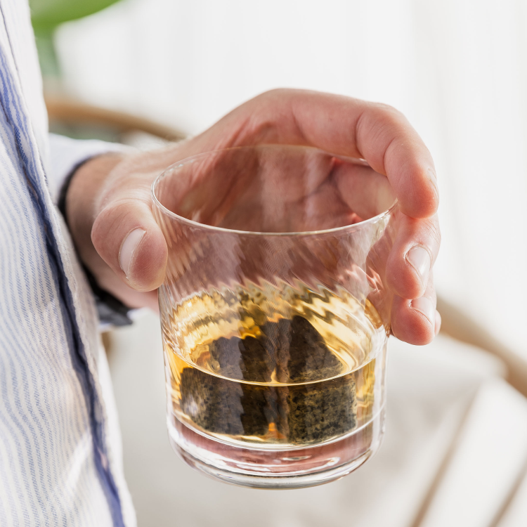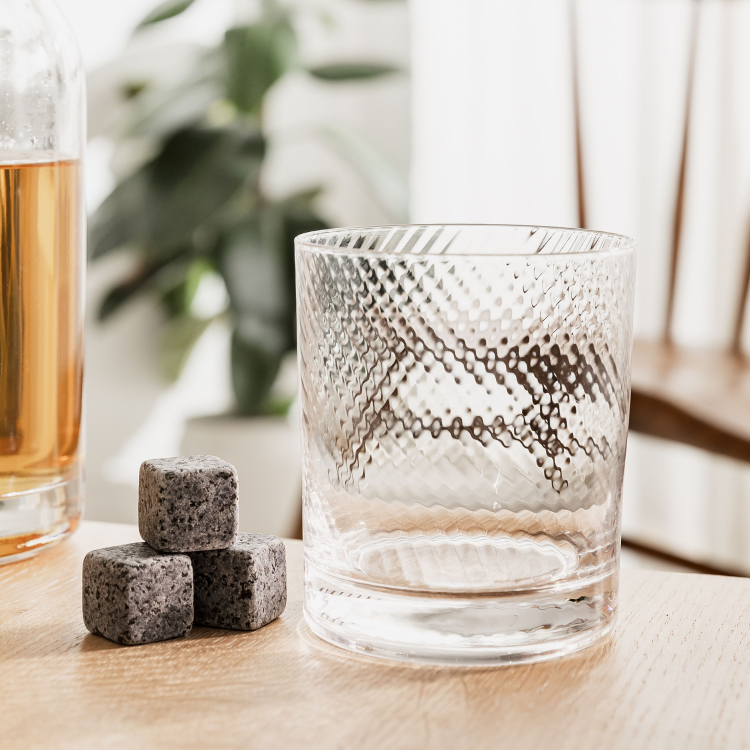 Included are three reusable granite whisky stones. Simply pop them in the freezer and drop them into your glass to achieve a perfect, cool temperature without watering down your drink.