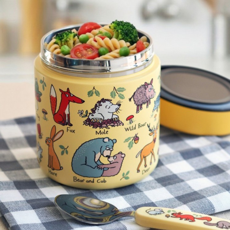 Adorned with charming “Woodland” illustrations, including a sleepy mole, a clever fox, and a cuddly bear and cub, this flask makes healthy eating on the go an absolute delight.