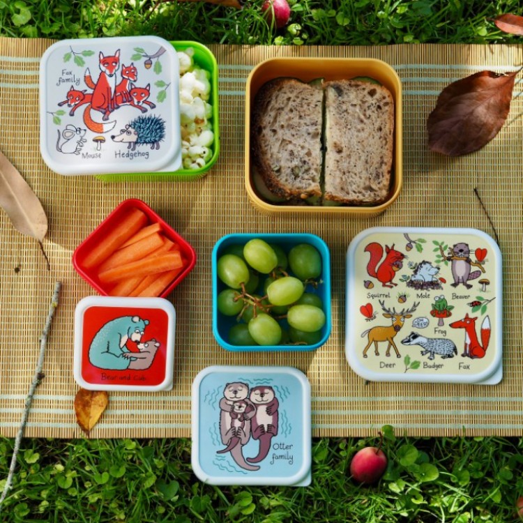 Make snack time a fun forest adventure with the Woodland Nesting Snack Boxes. Featuring the playful, hand-drawn illustrations by Tyrrell Katz, this set is perfect for school, nursery, or outdoor explorations. This set includes four different-sized containers that nest perfectly inside one another, allowing for easy, space-saving storage when not in use.